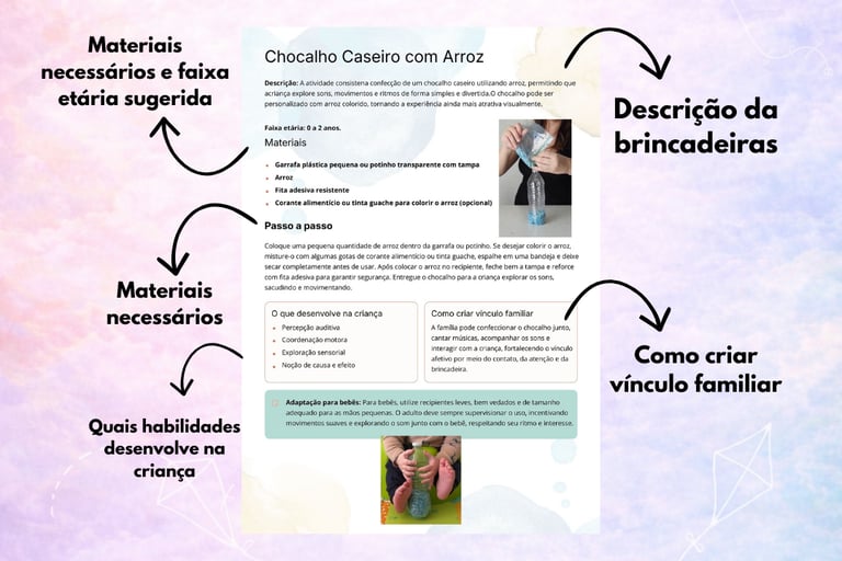 Este Pacote de Brincadeiras foi criado com base em princípios do desenvolvimento infantil, mas pensado para mães reais, com tempo limitado e rotina cheia.